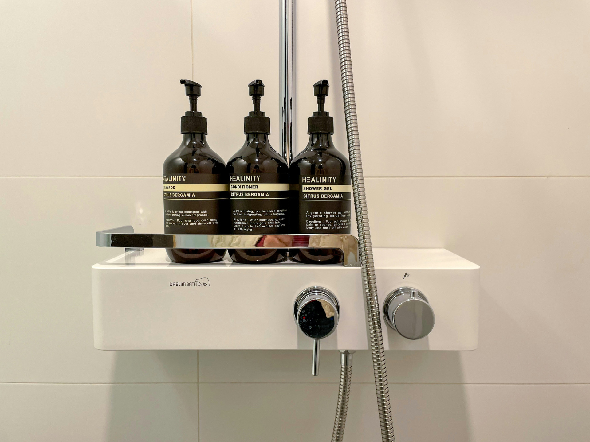 Duschsystemet kan användas tillsammans med genomströmningsvärmare från 18 kW/h och har ett minimumflöde på 7 liter per minut. Det kan dessutom kompletteras med en valfri EasyReach-hylla för förvaring av duschprodukter.
